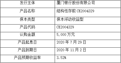 委托理財(cái)產(chǎn)品名稱:結(jié)構(gòu)性存款產(chǎn)品CK2004329。