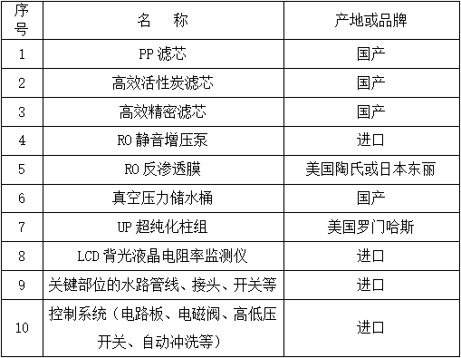 2.1.1基本工況要求:所需超純水機將在實驗室使用,滿足GB6682-2008標準的一級水和三級水的兩種類型水質(zhì)。