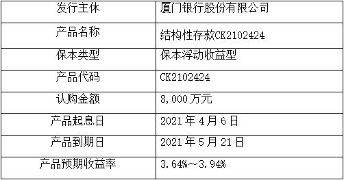 ?委托理財(cái)產(chǎn)品名稱(chēng):結(jié)構(gòu)性存款CK2102424。