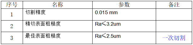 機床最大線切割速度≥120mm2/min,切割速度能達(dá)到越高越好。精加工(尺寸精度達(dá)到0.015mm,表面粗糙度達(dá)2.5um)時,線切割速度≥20mm2/min。