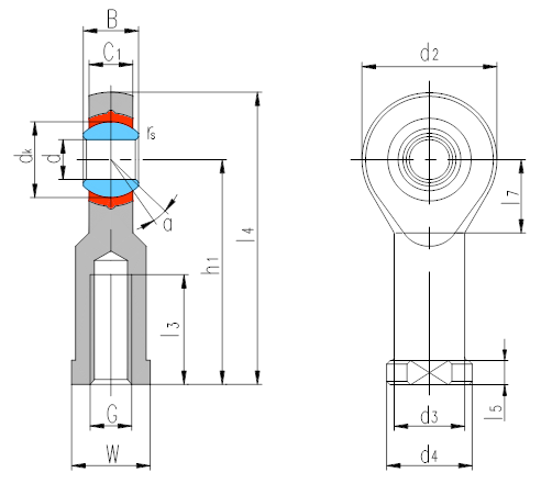 產品特點:自潤滑組裝桿端關節軸承是由桿端體、內圈和PTFE塑料組成,桿端體材料是碳鋼,表面鍍鋅,無需潤滑;內圈材料是軸承鋼,淬火,球面鍍硬鉻。
