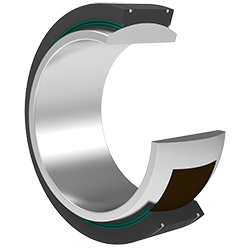 產品特點:外圈有一道軸向縫,兩端帶有密封圈,材料為軸承鋼,淬火,磷化,球面粘貼PTFE編織物;內圈材料為軸承鋼,淬火,球面鍍硬鉻。型號后置代號為XTL,表示外圈沿軸向剖分成兩半,用鎖圈固定。