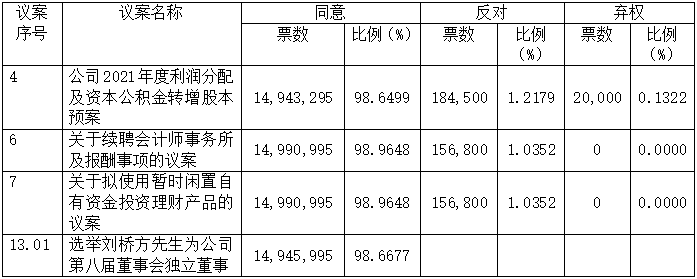 本次股東大會審議的議案十三采用累積投票制,此議案的表決結果僅統計列示表決同意股數及比例。