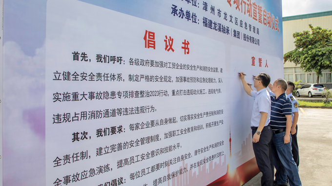 2023年6月30日,龍軸集團開展“暢通綠色生命通道”專項行動宣誓儀式暨滅火和應(yīng)急疏散預(yù)案演練活動。此次活動由公司與漳州市龍文區(qū)應(yīng)急管理局聯(lián)合舉辦。公司黨委副書記、總經(jīng)理陳志雄、黨委委員、副總經(jīng)理張逸青出席,各部室、車間代表參加活動。