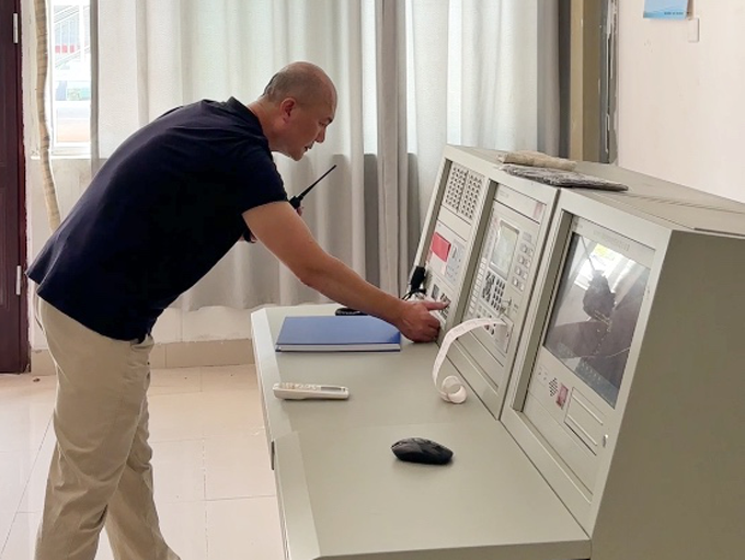 ▲值班人員接警并確認火情后,立即啟動消防廣播,發(fā)出疏散指令