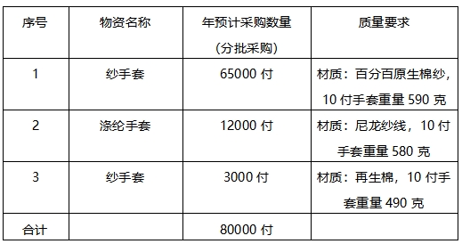 (一)項目名稱:紗手套、滌綸手套招標