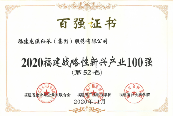 2020年11月20日,2020福建企業100強發布大會暨福建企業家大講壇在寧德市舉辦。會上,福建省企業與企業家聯合會聯合、福建省社會科學院、福建省廣播影視集團聯合發布的“2020福建戰略性新興產業領軍企業100強”榜單中,公司位列榜單第52名。