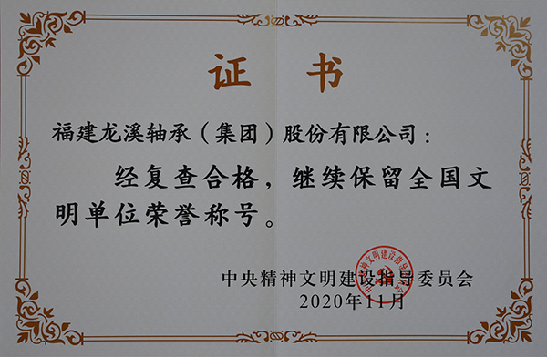 2020年11月,中央精神文明建設指導委員會下發《關于復查確認繼續保留榮譽稱號的全國文明城市、文明村鎮、文明單位、文明家庭、文明校園的通報》,公司再次順利通過復審,榮獲第六屆“全國文明單位”稱號,連續三屆榮獲此稱號。