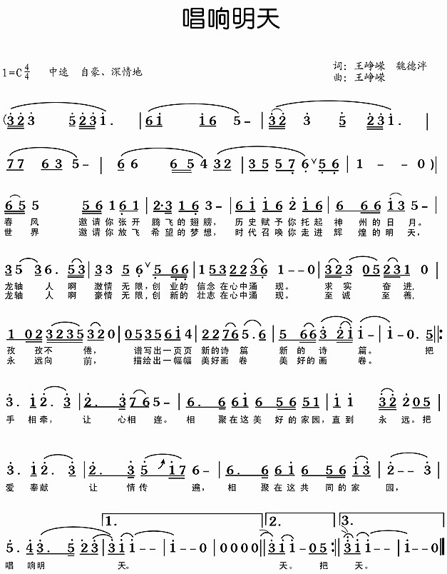 整首歌詞柔美抒情與激情豪邁兼容并蓄,用詞樸實(shí)卻又寓意深遠(yuǎn),頗有龍軸人腳踏實(shí)地、艱苦奮斗、志存高遠(yuǎn)的風(fēng)范。歌詞緊緊抓住“唱響明天”這一立意高遠(yuǎn)的主題,以龍軸集團(tuán)的發(fā)展歷程和前景為主線,著重體現(xiàn)了龍軸集團(tuán)、龍軸人在“求實(shí)奮進(jìn)”企業(yè)精神和“至誠至善”核心價(jià)值觀的指導(dǎo)下,經(jīng)過幾十年的拼搏、奮斗,必將會有更美好的明天,借以抒發(fā)出龍軸人建設(shè)世界知名、客戶首選的現(xiàn)代企業(yè)集團(tuán)的豪情壯志,讓大家自豪地唱出:相聚在這個(gè)共同的家園,龍軸,必將唱響明天!
