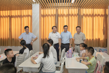 2022年7月26日下午,集團黨委書記、董事長陳晉輝帶隊前往漳州學達教育集團有限公司看望關心龍軸集團職工子女,了解龍軸集團暑托班的開展情況,現場檢查孩子們的學習、午休環境,為孩子們和老師們送上一份禮物,并帶去組織的關懷。集團黨委副書記、總經理陳志雄,黨委委員、常務副總經理鄭長虹,黨委副書記、工會主席劉明福及集團工會、綜合部相關人員陪同。