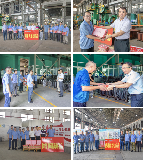 2022年7月27日,公司黨委書記、董事長陳晉輝帶隊深入鍛工車間、車工一車間、車工二車間、熱處理車間等生產一線開展“情系員工送清涼”活動,親切慰問戰高溫、斗酷暑、保高產的廣大員工,為廣大員工送上清涼防暑用品。公司黨委副書記、總經理陳志雄,黨委委員、常務副總經理鄭長虹,黨委副書記劉明福,紀委書記王志劼,副總經理張逸青、林通靈,總工程師林振元等一同參加活動。