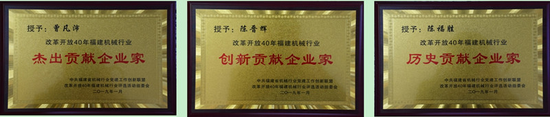 2019年1月30日,改革開放40年福建機械行業(yè)杰出貢獻(xiàn)企業(yè)家表彰大會在福州隆重召開。公司黨委書記、董事長曾凡沛獲改革開放40年福建機械行業(yè)杰出貢獻(xiàn)企業(yè)家殊榮;公司黨委副書記、總經(jīng)理陳晉輝獲改革開放40年福建機械行業(yè)創(chuàng)新貢獻(xiàn)企業(yè)家殊榮;原公司黨委書記、董事長陳福勝獲改革開放40年福建機械行業(yè)歷史貢獻(xiàn)企業(yè)家殊榮。