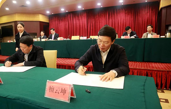 ????1月8日晚,省人大常委會副主任、市委書記檀云坤,市長劉遠(yuǎn)代表市委、市政府與各縣(市、區(qū))、開發(fā)區(qū)(投資區(qū))黨政主要領(lǐng)導(dǎo)及市直有關(guān)單位主要負(fù)責(zé)人,簽訂(下達(dá))了2019年綜治(平安建設(shè))責(zé)任書。市委副書記、政法委書記阮開森主持會議并通報全市落實2018年度黨政領(lǐng)導(dǎo)綜治責(zé)任書情況。