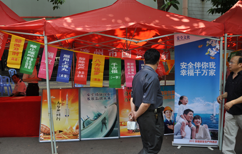 按照《漳州市人民政府安全生產(chǎn)委員會(huì)辦公室關(guān)于做好安全生產(chǎn)宣傳咨詢?nèi)栈顒?dòng)的通知》精神,6月9日早上,我公司代表國(guó)資系統(tǒng)參加漳州市2013年安全生產(chǎn)宣傳咨詢?nèi)栈顒?dòng),在市區(qū)延安北路繁華路段設(shè)置咨詢點(diǎn),舉行安全生產(chǎn)知識(shí)咨詢活動(dòng)。主要活動(dòng)內(nèi)容有:分發(fā)安全生產(chǎn)宣傳資料;安全生產(chǎn)知識(shí)咨詢;謎語(yǔ)競(jìng)猜;安全月主題展等。