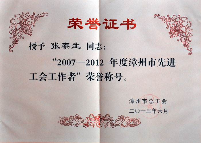 漳州市先進(jìn)工會(huì)工作者(張?zhí)┥?/FONT>