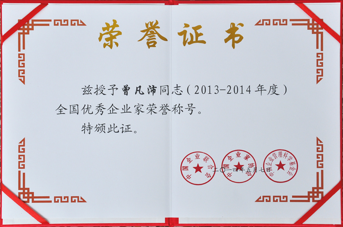 全國(guó)優(yōu)秀企業(yè)家(曾凡沛)