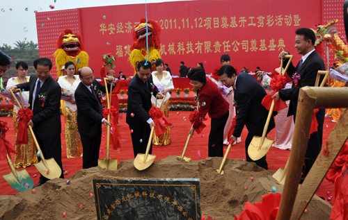 2011年11月12日,在第三屆海峽兩岸現(xiàn)代農(nóng)業(yè)博覽會·第十三屆海峽兩岸花卉博覽會即將召開之際,公司全資子公司——福建金昌龍機(jī)械科技有限責(zé)任公司在漳州市華安經(jīng)濟(jì)開發(fā)區(qū)舉行了盛大的奠基典禮!漳州市市長吳洪芹及洪仕建、陳少青等市領(lǐng)導(dǎo)親臨慶典現(xiàn)場并為項(xiàng)目揭彩、培土,華安縣委書記柯志宏、縣長沈建平率華安縣相關(guān)部門負(fù)責(zé)人,公司黨委書記、董事長曾凡沛、總經(jīng)理許廈生、常務(wù)副總經(jīng)理陳晉輝率全體中層主管參加了奠基典禮。公司黨委書記、董事長曾凡沛在慶典上發(fā)表了熱情洋溢的致辭
